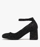 Ajoutez une touche de glamour à votre tenue avec ces escarpins à bout rond entièrement recouverts de paillettes à effet texturé. Idéales pour accompagner vos tenues de soirée et looks de fête, ces escarpins allient féminité et élégance. Ils sont dotés d'un talon haut de 7 cm et large pour vous assurer une parfaite stabilité tout en sublimant votre silhouette. La bride à la cheville avec boucle ardillon et élastique d'aisance assure un maintien sécurisé et confortable tout en soulignant votre pied. Grâce à la semelle intérieure moussée, chaque pas de danse reste un plaisir.