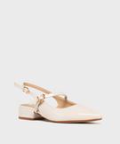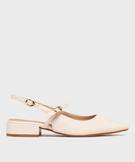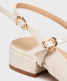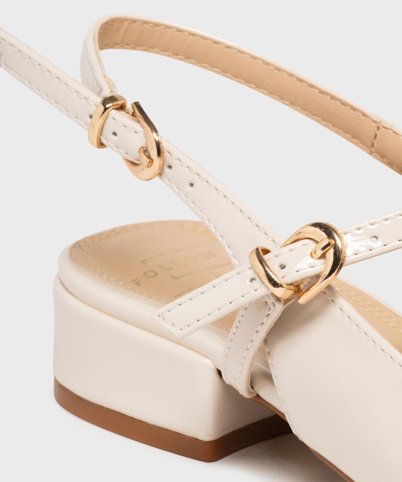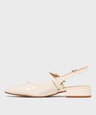 Escarpins à large talon plat et bout pointu vernis femme ecru