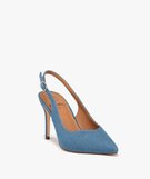 Escarpins à talon aiguille et bout pointu en toile denim femme - Valentina Baldano denim