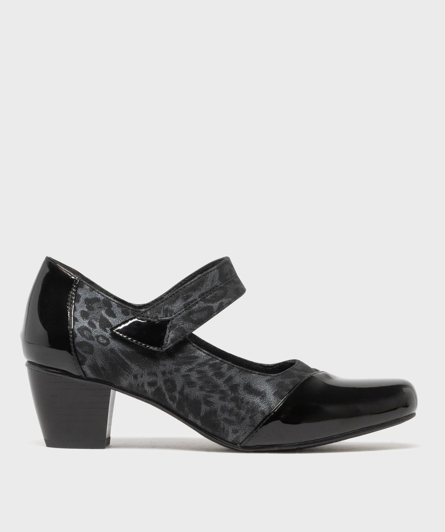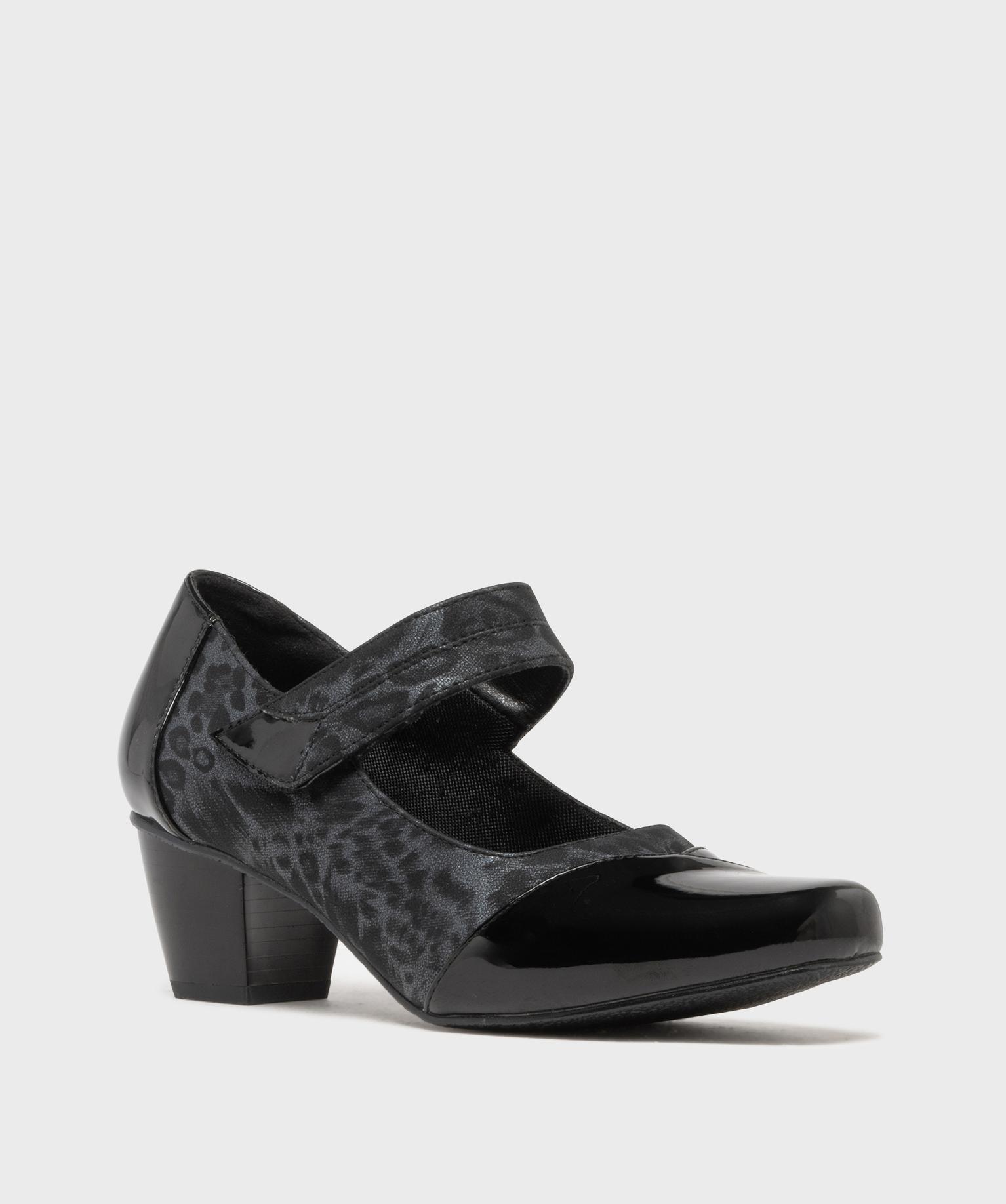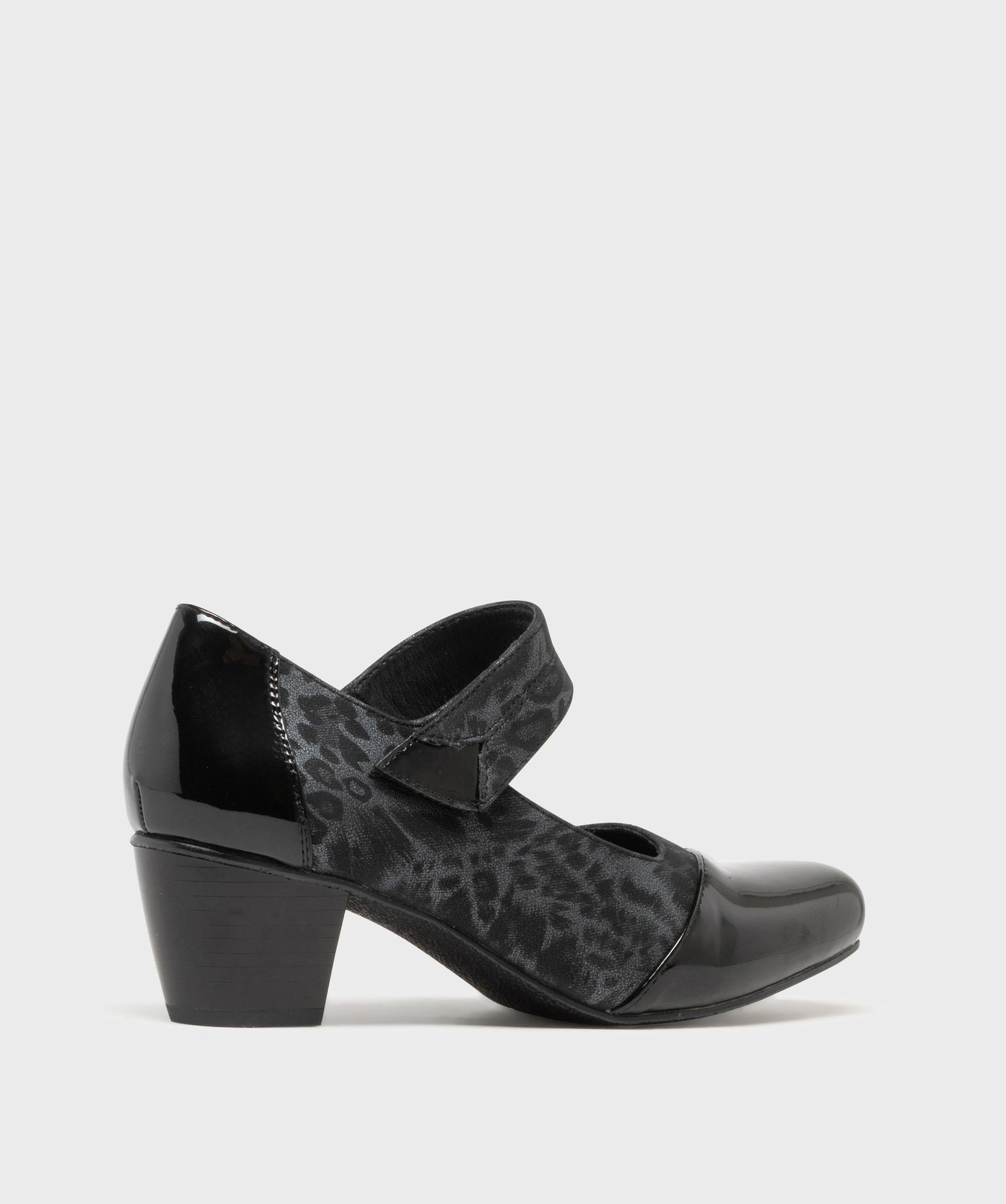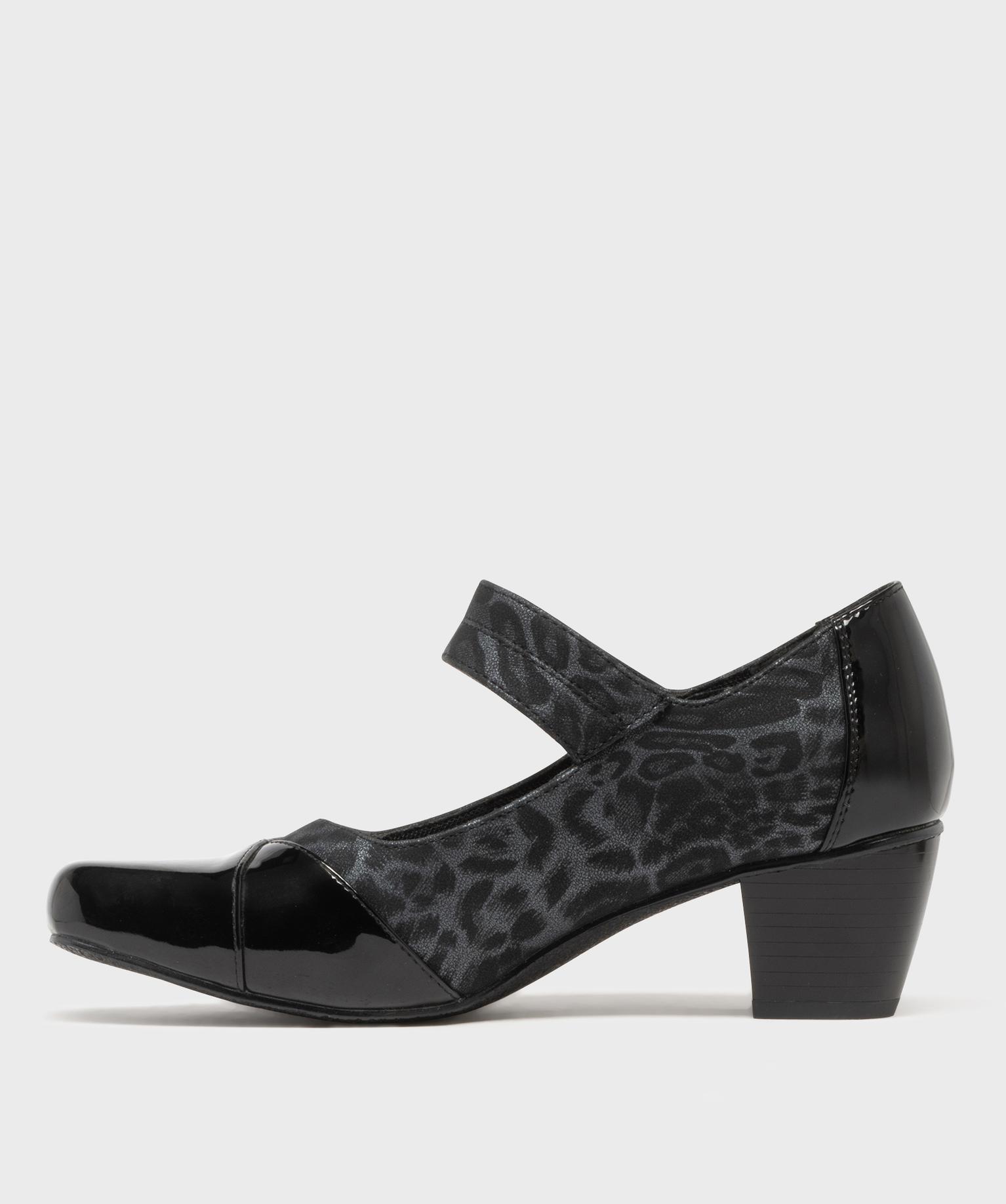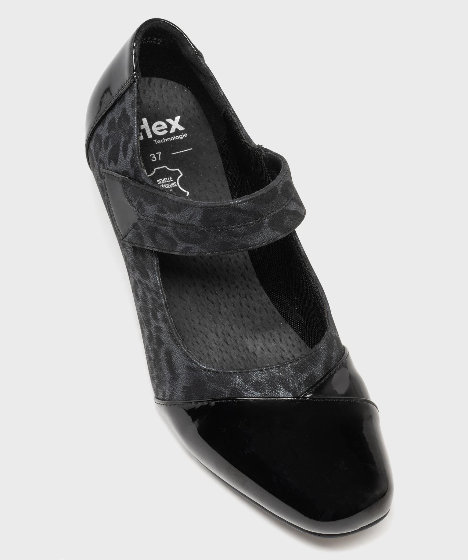 Ces escarpins confort à talon cubain de 5 cm vous garantissent un confort de marche agréable tout au long de la journée. Dotées d'un bout carré verni, d'une tige subtilement imprimée léopard et d'un talon verni également, ces chaussures confort pour femme sont particulièrement féminines. Elles accompagneront facilement vos robes, jupes et combinaisons chics. Sur le cou de pied, une bride à scratch permet un ajustement sur mesure.