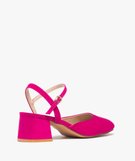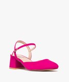 Escarpins femme à talon carré en suédine avec bride cheville [MISSING] rose