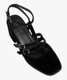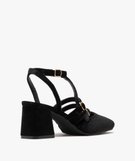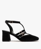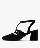 Escarpins femme à talon carré et en velours avec triple brides noir