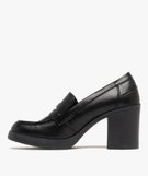 Escarpins femme à talon carré style mocassins noir