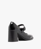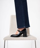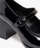 Escarpins femme à talon flare dessus vernis et à fine bride à boucle noir