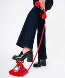 Escarpins femme à talon haut flare et plateforme vernis à bout carré noir