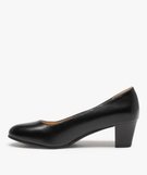 Escarpins femme à talon rainuré et bout rond dessus uni noir