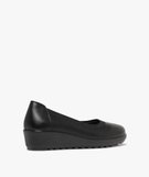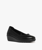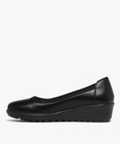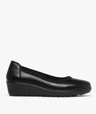 Inspirées des ballerines, ces chaussures confort sont irrésistibles. Simples à enfiler, le col est équipé d'un élastique d'aisance pouvant s'adapter à toutes les morphologies. L'intérieur de ces escarpins est doublé au toucher et la semelle moussée. Ces chaussures à talon compensé optent pour une semelle à crans visibles, un détail moderne et qui permet de fouler tous les sols avec assurance. À porter avec une jupe crayon et un chemisier ou avec un jean et un pull jersey.