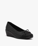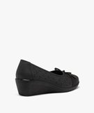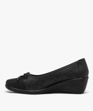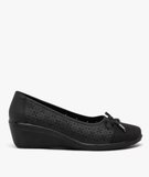 Escarpins femme confort unis à semelle compensée avec motifs ajourés noir