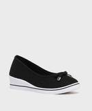 A mi-chemin entre la ballerine et l’escarpin, cette chaussure à talon à la fois féminine et décontractée se prête à toutes les tenues estivales. Montés sur un petit talon compensé, ces escarpins pour femme procurent une marche confortable. La silhouette reste féminine et décontractée en toutes occasions, avec une jupe en jean et un tee-shirt comme avec un pantalon 7/8e et une veste en maille fine. Nœud décoratif avec bouts métalliques sur le bout du pied. Semelle extérieure à liseré coloré.