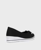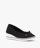 A mi-chemin entre la ballerine et l’escarpin, cette chaussure à talon à la fois féminine et décontractée se prête à toutes les tenues estivales. Montés sur un petit talon compensé, ces escarpins pour femme procurent une marche confortable. La silhouette reste féminine et décontractée en toutes occasions, avec une jupe en jean et un tee-shirt comme avec un pantalon 7/8e et une veste en maille fine. Nœud décoratif avec bouts métalliques sur le bout du pied. Semelle extérieure à liseré coloré.