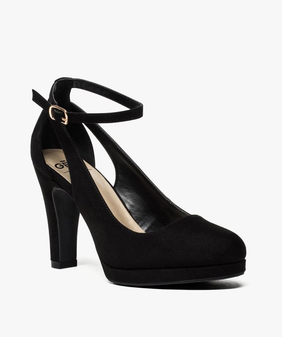 Escarpins femme unis à semelle plateforme et bride cheville noir
