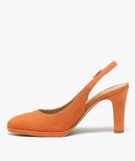 Escarpins femme unis dessus en suédine avec bride à boucle orange