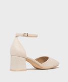 Escarpins pailletés à talon large et bout pointu femme - Valentina Baldano ecru
