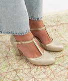 Incarnez le charme des danseuses de salon avec ces salomés à talon. Des escarpins femme montés sur un talon large de 7,5 cm qui sublime la jambe tout en offrant une silhouette spectaculaire. L'effet patiné doré ajoute une touche de glamour au modèle. Les escarpins sont équipés d'une fermeture par boucle réglable à la cheville, accompagnée d'un élastique d’aisance, pour un maintien parfait et confortable. Les côtés du pied sont élégamment découverts pour un look sexy et raffiné. Avec une robe chic ou un pantalon élégant, ces escarpins sont le choix parfait pour toutes les occasions spéciales.