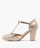 Escarpins salomés brillants à talon large femme dore