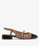 Indispensables de la saison, les escarpins sling-back s’affichent dans une version toile rehaussée d’un bout verni. Des escarpins femme dotés d’une fine bride sur le dessus pour un meilleur maintien, fermée par une boucle métallique. De fines brides sur les côtés assurent un bon positionnement de la bride arrière, elle aussi fermée par une boucle. Ces escarpins en toile reposent sur une semelle fine et un petit talon enrobé assurant une parfaite stabilité. Très élégants avec une jupe droite, ils se portent aussi avec un jean retroussé.