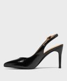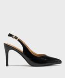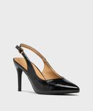 Escarpins sling-back vernis à bout pointu et talon aiguille femme - Valentina Baldano noir