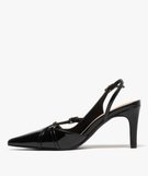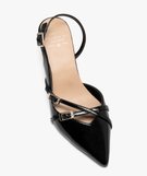 Escarpins sling-back vernis à bout pointu et talon aiguille femme noir