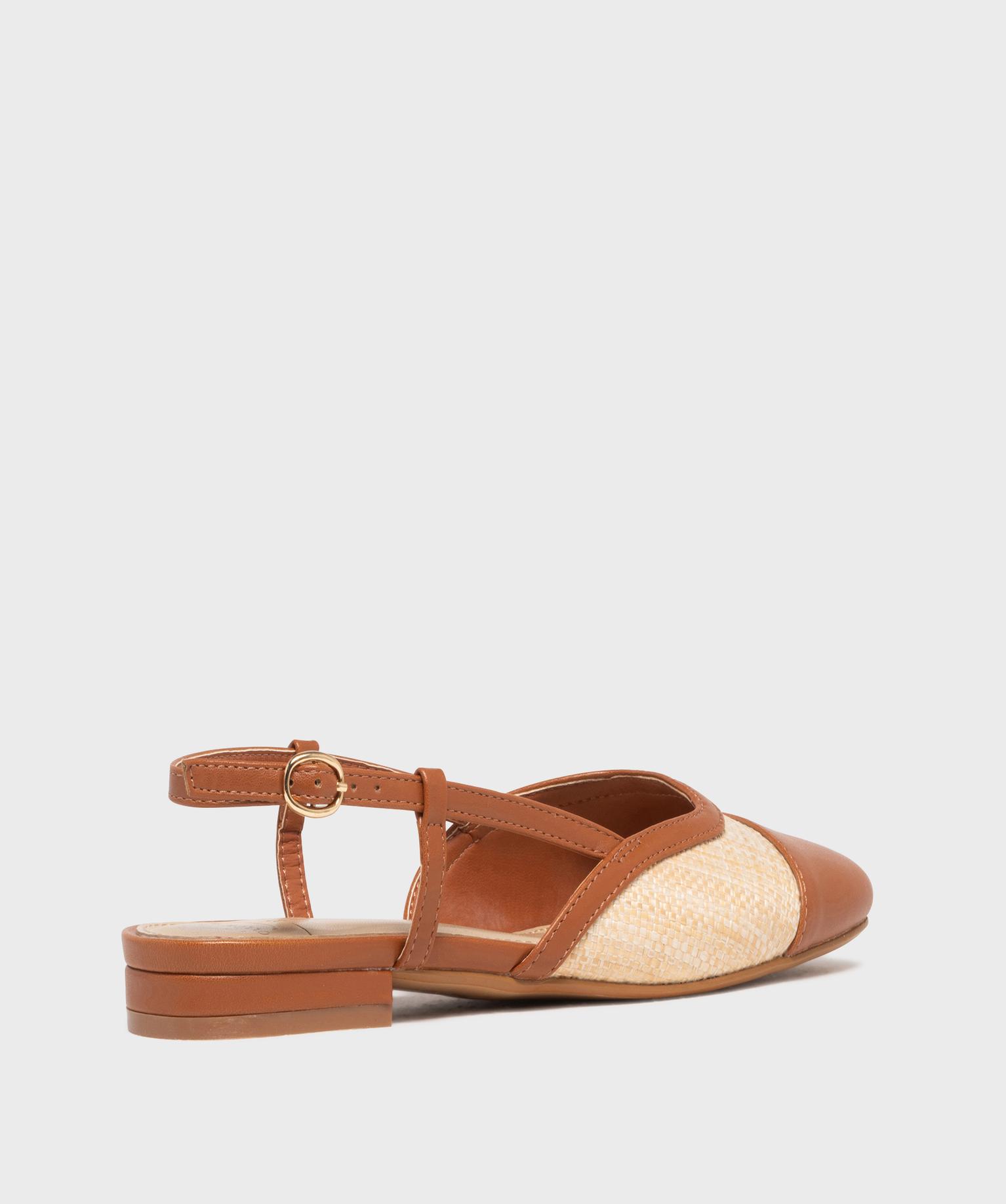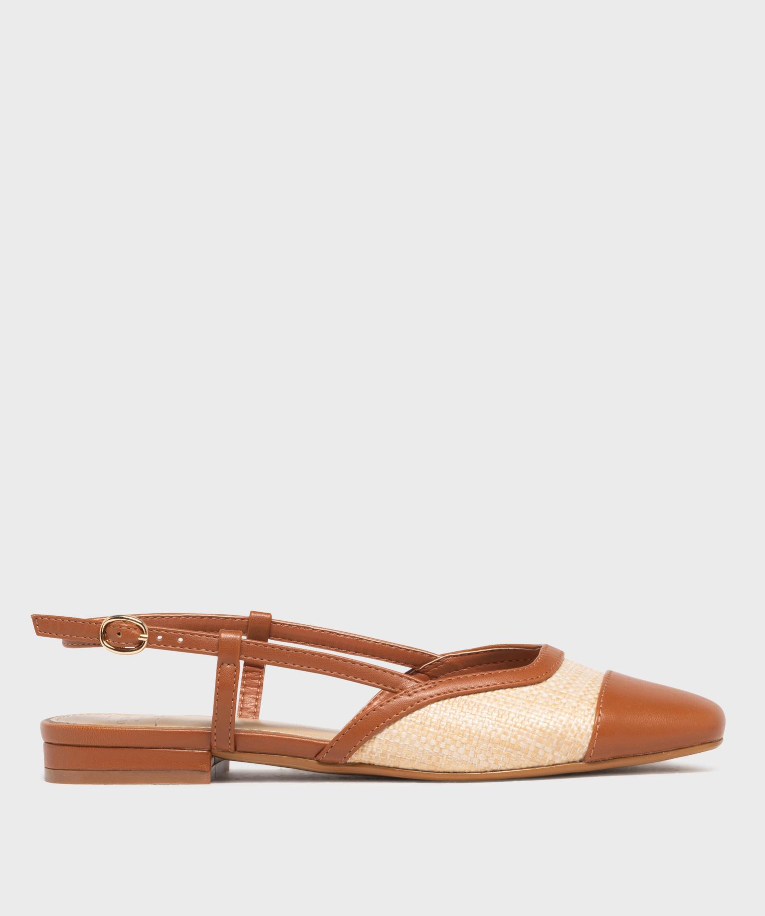 Escarpins slingback à talon plat bimatières femme - Follow Me marron