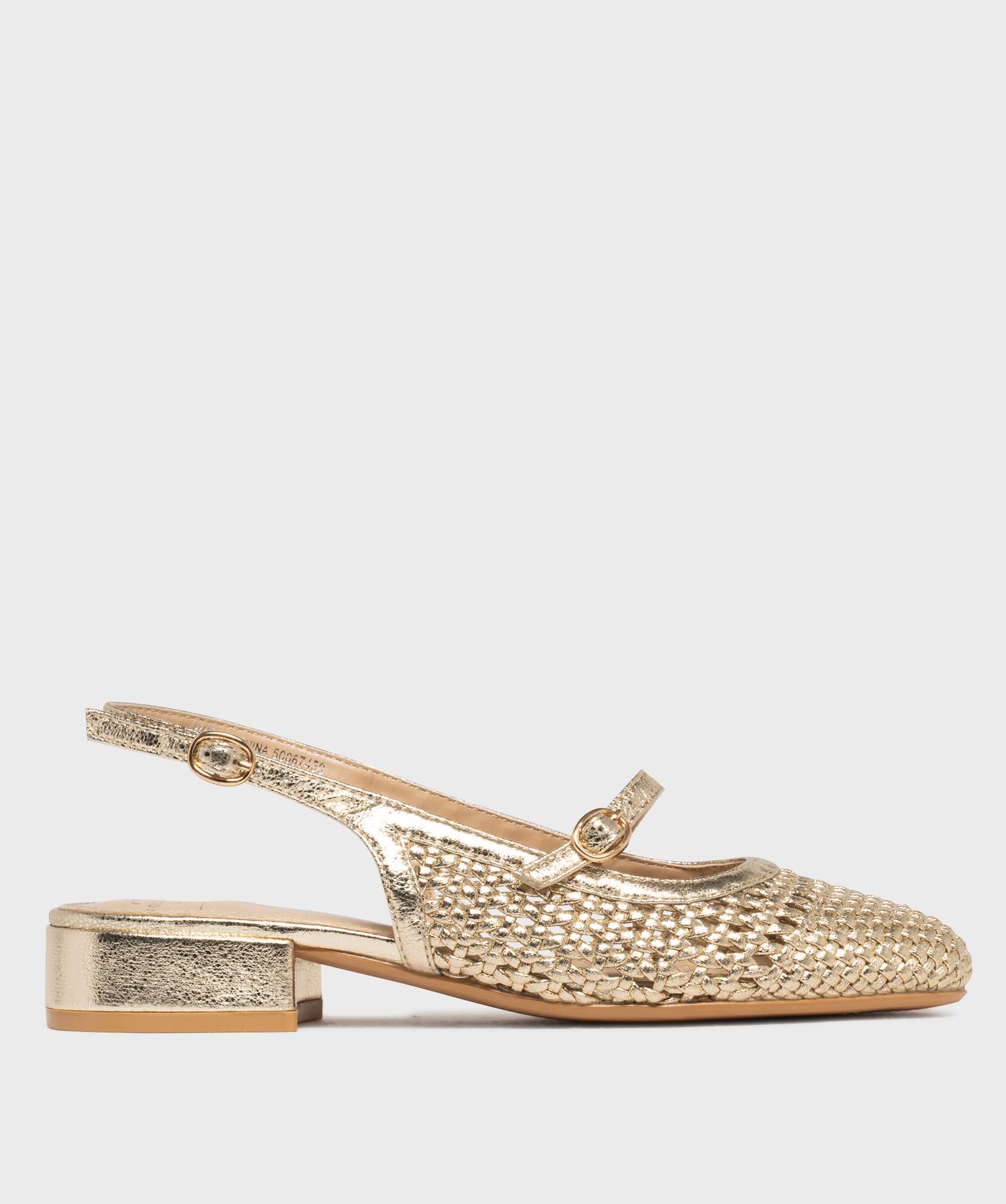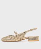 Escarpins slingback à talon plat et tige ajourée femme dore