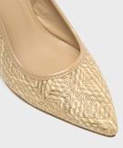 Ces escarpins slingback à bout pointu se distinguent par leur allure raffinée et leur matière originale. Conçus dans une matière effet raphia subtilement incrustée de fils métallisés, ils mêlent esprit naturel et touche d’éclat. Leur talon fin au design graphique élance la silhouette, tandis que la bride arrière, fermée par une boucle ovale, assure un excellent maintien. Des escarpins femme parfaits pour sublimer une tenue de cérémonie ou apporter une note sophistiquée à un look estival.