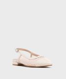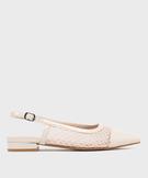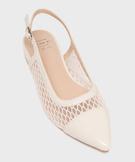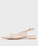 Escarpins slingback en tulle et matière vernie à talon plat femme - Follow Me beige