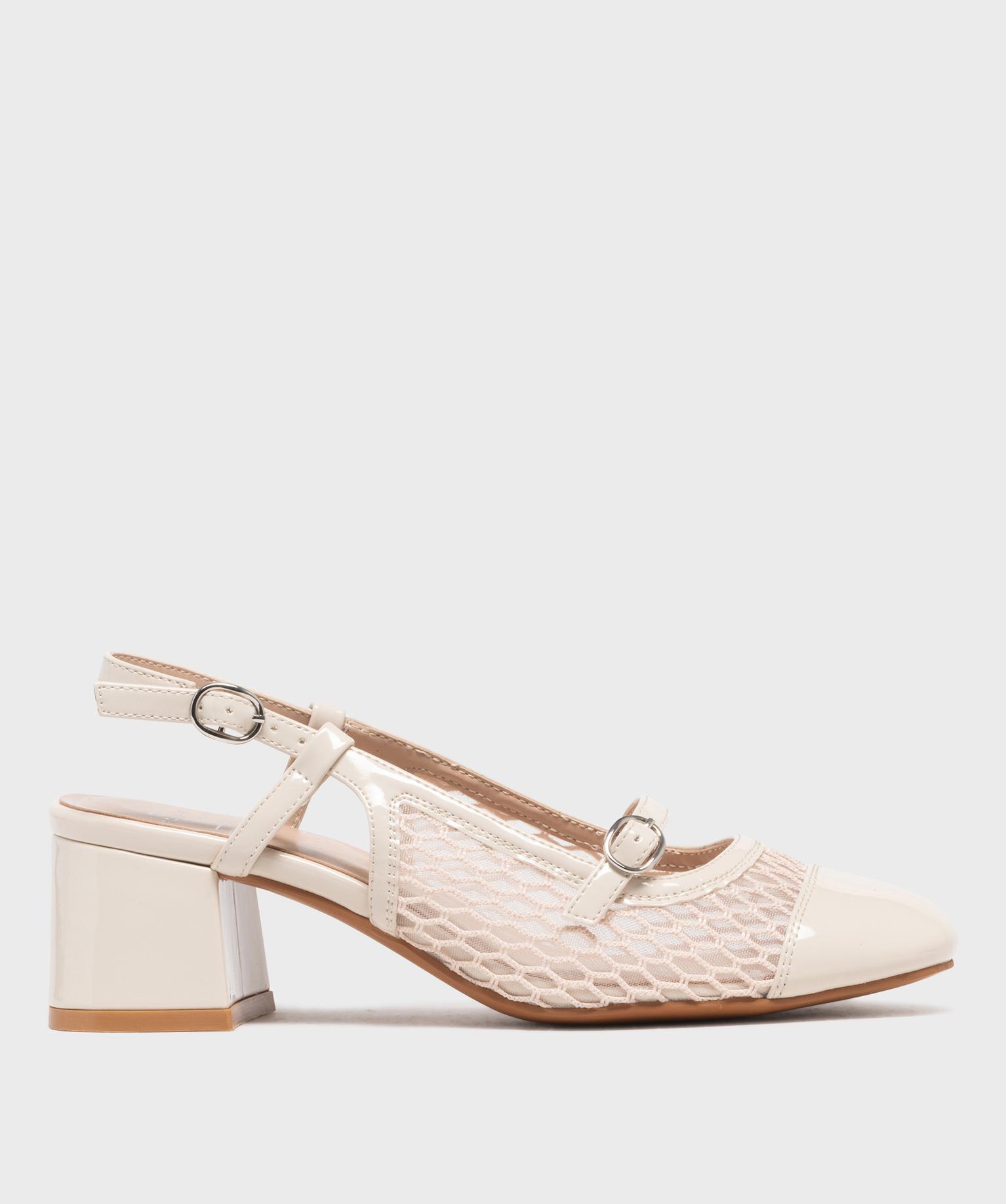Escarpins slingback en tulle et matière vernie femme - Follow Me beige