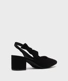 Escarpins slingbacks en suédine à talon large et bout pointu femme - Valentina Baldano noir