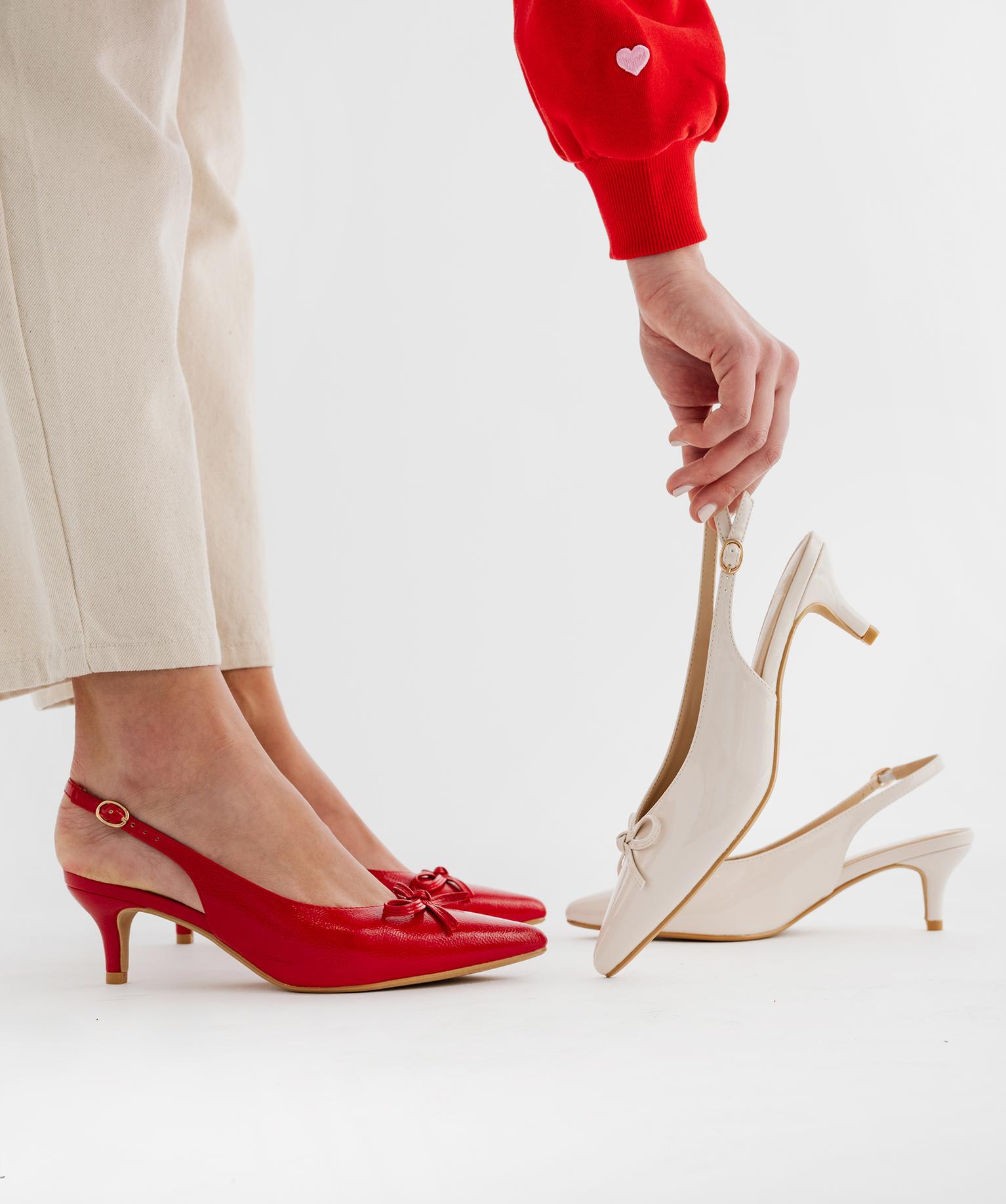 Escarpins vernis kitten heels à bout pointu et talon ouvert femme rouge