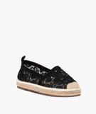 Les espadrilles femme se réinventent dans une version ultra féminine ! Ici l'empeigne en tulle transparent brodé de fleurs joue les contrastes avec l'emblématique semelle de corde. La chaussure en toile reste confortable, mais donne immédiatement beaucoup d'allure à un pantalon ample ou une jupe portefeuille. La semelle intérieure est moelleuse pour plus d'amorti et de confort au quotidien.