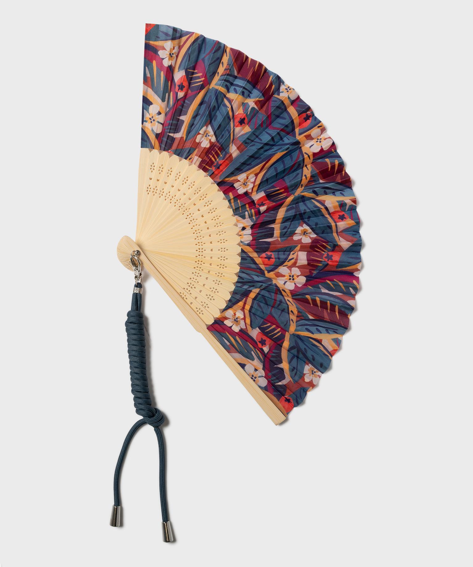 Rehaussez vos looks estivaux tout en profitant d'une bouffée d'air frais grâce à ce magnifique accessoire ! L'éventail se compose de brins en bambou ajouré, d'une toile fleurie aux couleurs riches et d'un cordon assorti. Pratique, le cordon est ajustable et amovible par mousqueton. Avec son format compact, cet éventail est facile à glisser dans tous vos sacs, du sac de plage à la petite pochette de ville !
