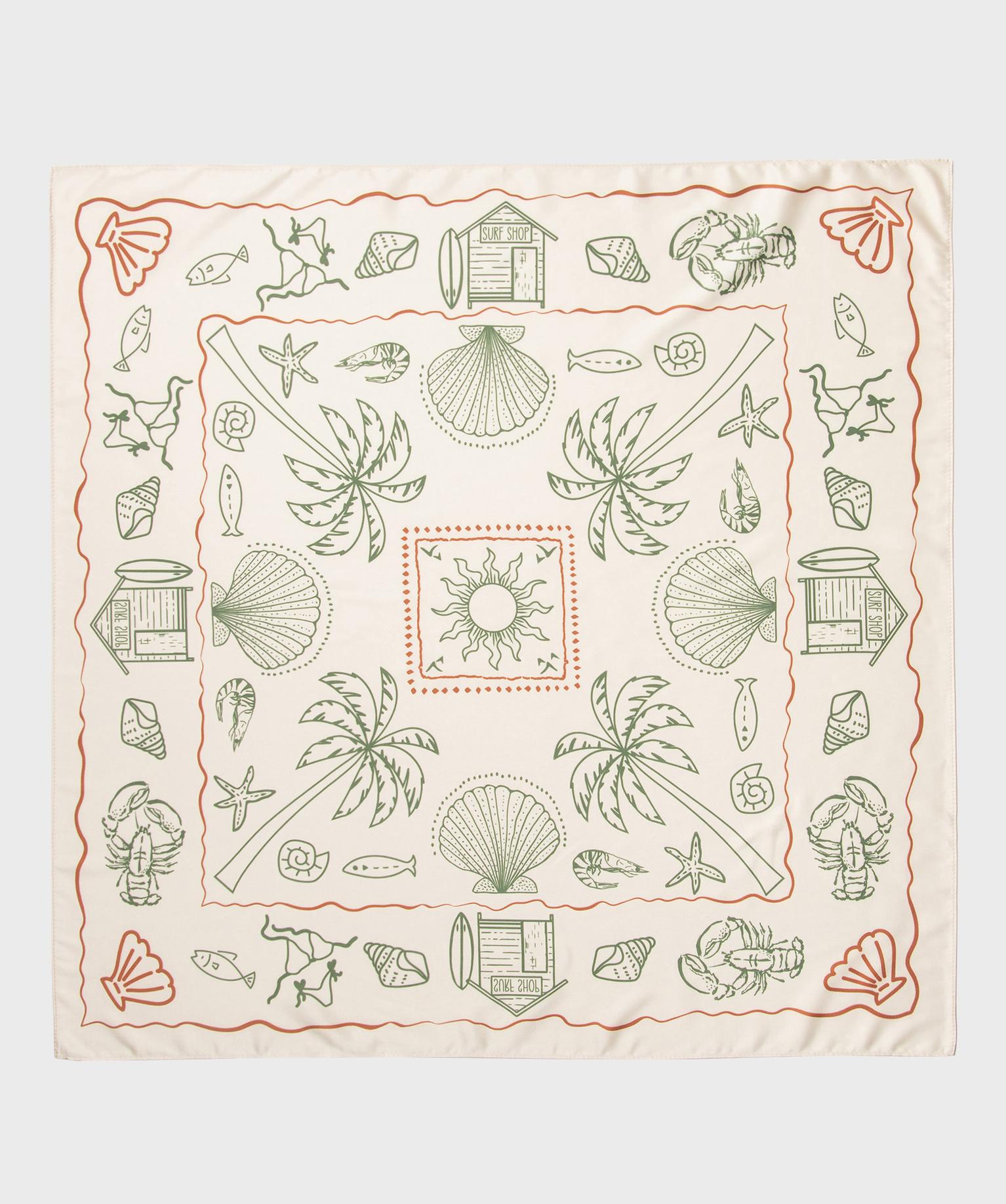 Élégant et responsable, ce foulard femme en polyester recyclé séduit par sa forme carrée de 65 cm de côté et son fini satin subtilement brillant. Doux et chic, il offre un joli tombé et un toucher agréable. Son décor imprimé de motifs estivaux apporte une note fraîche et lumineuse à vos tenues. Facile à nouer autour du cou, en bandeau ou sur un sac, le foulard en satin carré permet de varier les styles selon vos envies. Un accessoire raffiné.