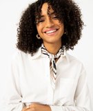Que vous le portiez autour de votre cou, de votre poignet, dans vos cheveux ou comme accessoire de sac, ce foulard en satin fleuri vous garantit une touche d'élégance. Son format carré et ses petites dimensions (55 x 55 cm) le rendent parfait pour accessoiriser tous vos looks. Ourlet piqué.