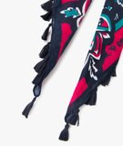 Foulard carré imprimé fleuri et pompons femme bleu