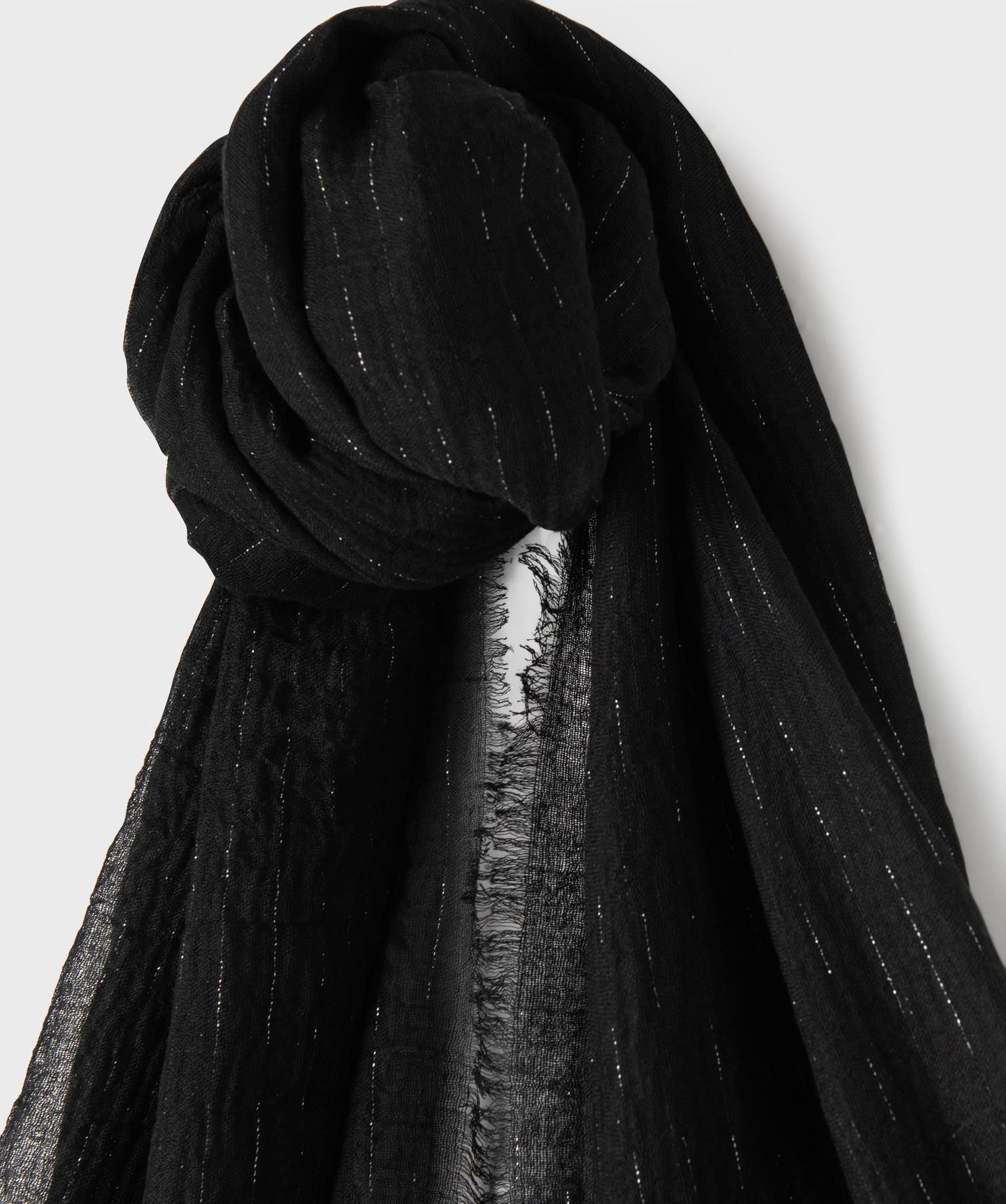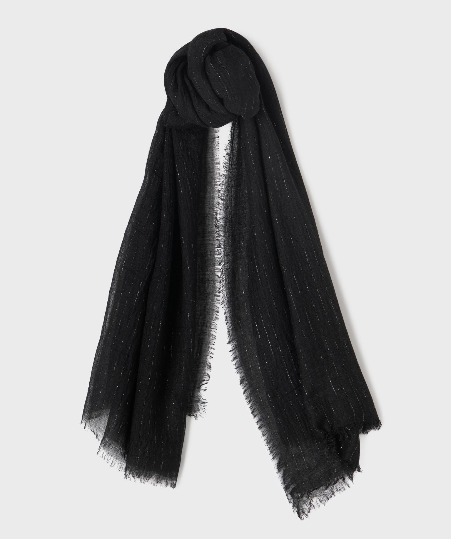 Pour accessoiriser vos tenues et leur apporter une jolie touche de lumière, adoptez ce foulard en maille gaufrée et subtilement pailletée. Un foulard femme au style élégant qui s’accordera parfaitement avec une robe, un blazer comme une veste en jean. Ce foulard uni aux finitions frangées est doux et léger, avec des dimensions généreuses pour se plier à toutes vos envies.