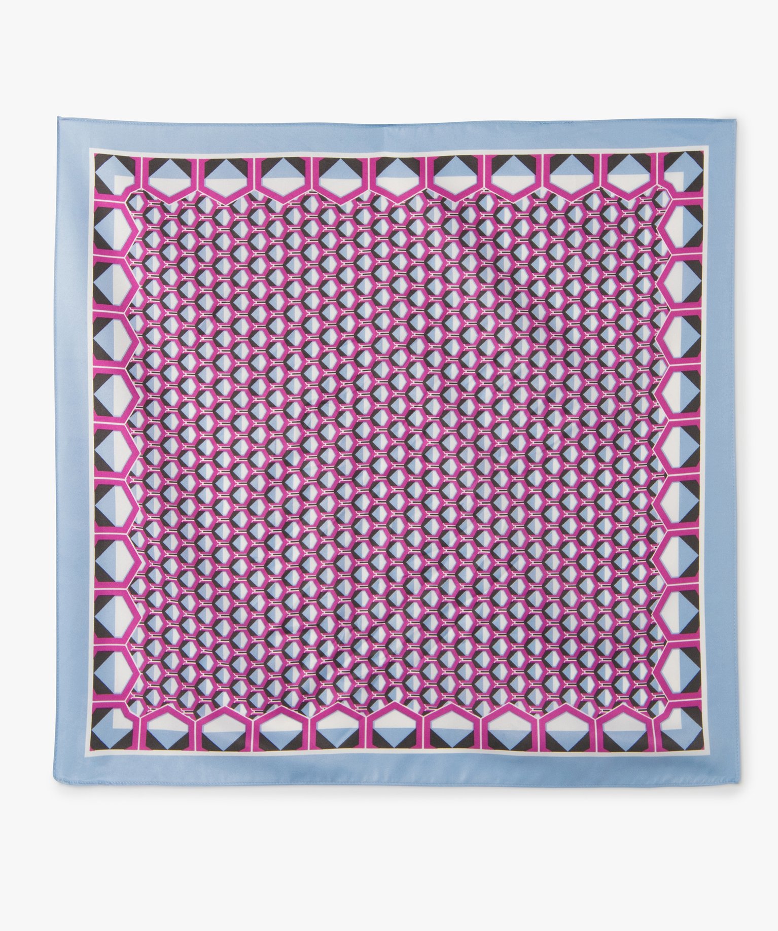 On craque pour ce joli petit foulard carré en matière satinée. Un indispensable du vestiaire féminin parfait pour accessoiriser tous les looks. Il se porte autour du cou ou noué dans les cheveux, mais aussi autour du poignet ou noué à l’anse de votre sac à main. Un foulard femme ultra chic orné de motifs graphiques dans les teintes très féminines.