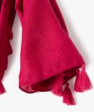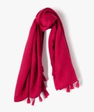 Foulard femme uni en maille texturée et finitions pompons fuchsia