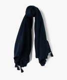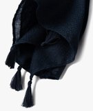 Foulard femme uni en maille texturée et finitions pompons bleu clair