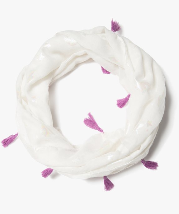 Foulard snood à motifs irisés et pompons fille blanc