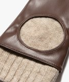 Ces gants pour femme vous assurent une allure chic jusqu’au cœur de l’hiver ! Des gants qui mettent autant en valeur leur dessus en matière synthétique cuir imitation que l’intérieur en maille chinée assortie. Ces gants ajustés sur la main couvrent le début de l'avant bras. Jolie touche d’originalité : une large ouverture ronde au niveau du poignet laisse apercevoir la doublure en maille qui dépasse, terminée par un bord en côtes. Ces gants bi-matières sont une réussite, tant pour leur style élégant que pour leur côté chaud et réconfortant.