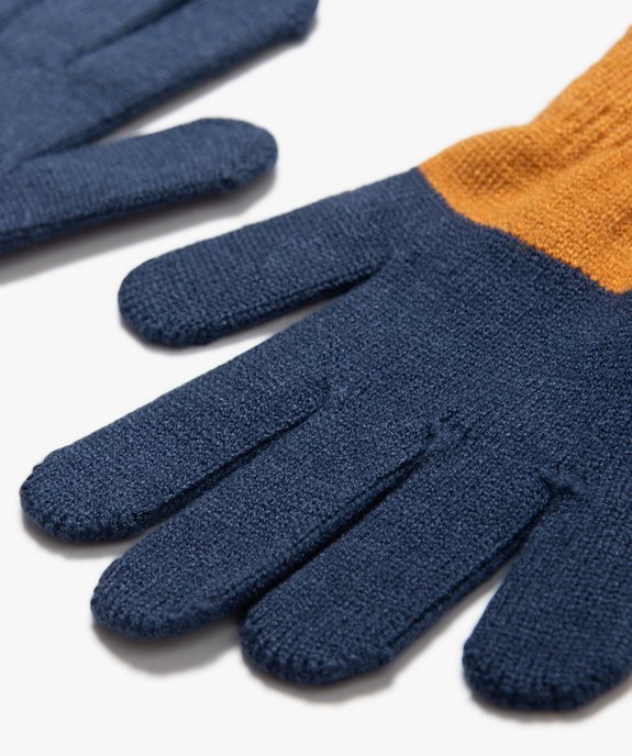 Indispensables pour passer un hiver bien au chaud : les gants tricotés tout doux ! Des gants pour garçon en maille fine faciles à vivre au quotidien. Bicolores, ces gants sont pleins de peps. Finition bord-côte aux poignets.