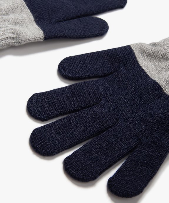 Indispensables pour passer un hiver bien au chaud : les gants tricotés tout doux ! Des gants pour garçon en maille fine faciles à vivre au quotidien. Bicolores, ces gants sont pleins de peps. Finition bord-côte aux poignets.