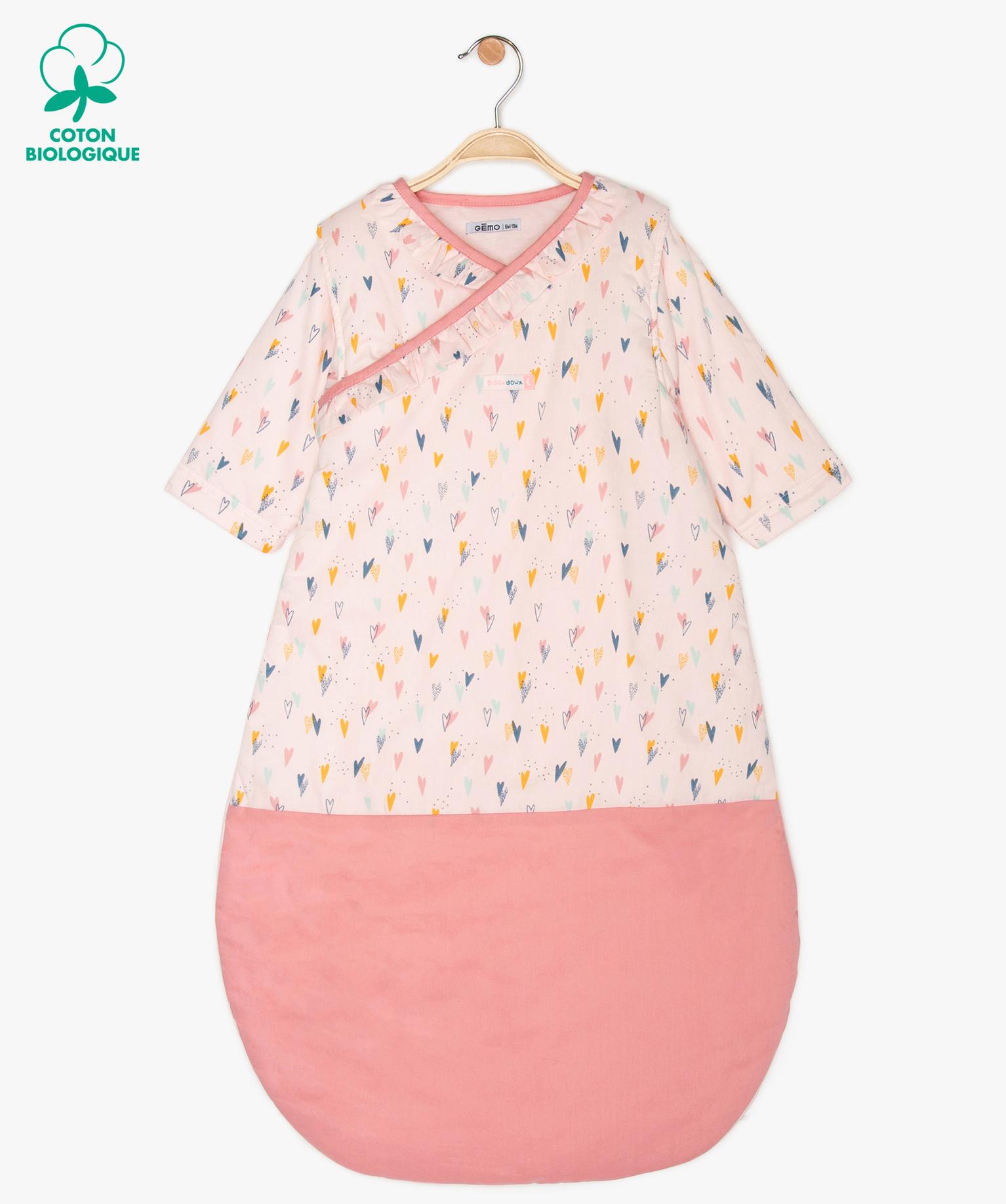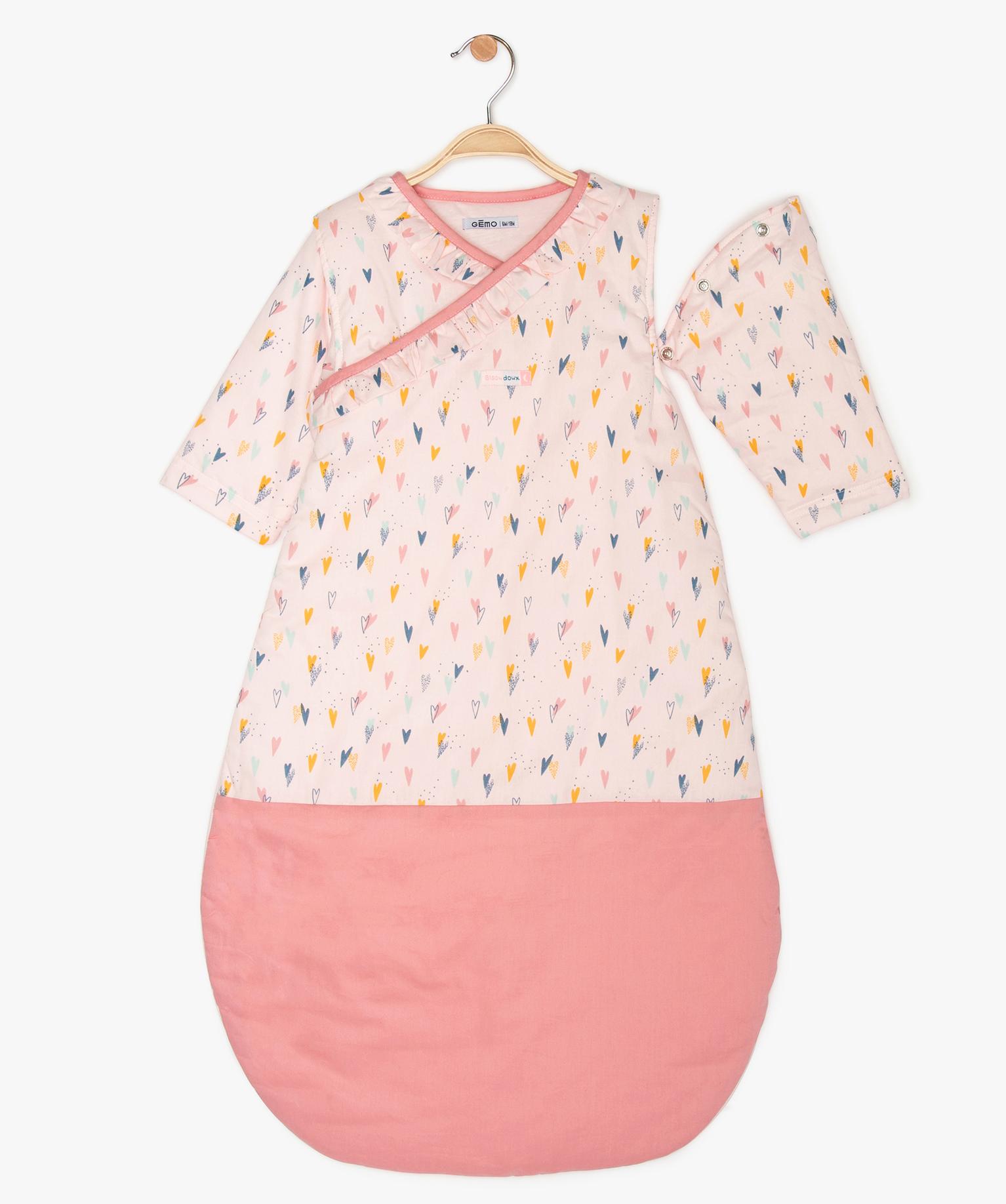 Gigoteuse bébé fille à motifs cœurs avec manches amovibles rose