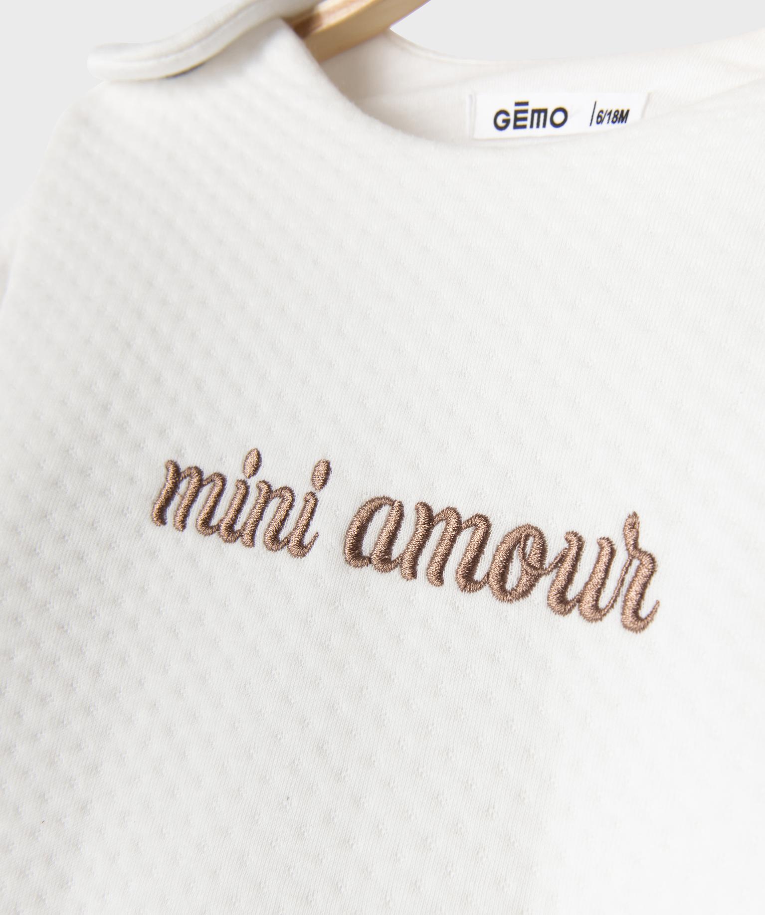 Indispensable pour des nuits bien au chaud, cette gigoteuse hiver accompagnera bébé en douceur au pays des rêves. Confectionnée dans une matière douce et moelleuse, elle est idéale pour affronter les nuits fraîches. Ses manches amovibles permettent d’adapter facilement la chaleur en fonction de la température de la chambre. La fermeture zippée dans le bas facilite l’habillage et le change, tandis que sa coupe ample laisse à bébé toute la liberté de bouger confortablement. Cette gigoteuse bébé s’affiche dans un coloris mixte et arbore une jolie inscription brodée sur le buste.