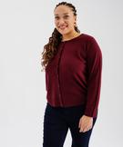 Gilet à col rond en maille fine femme grande taille rouge fonce