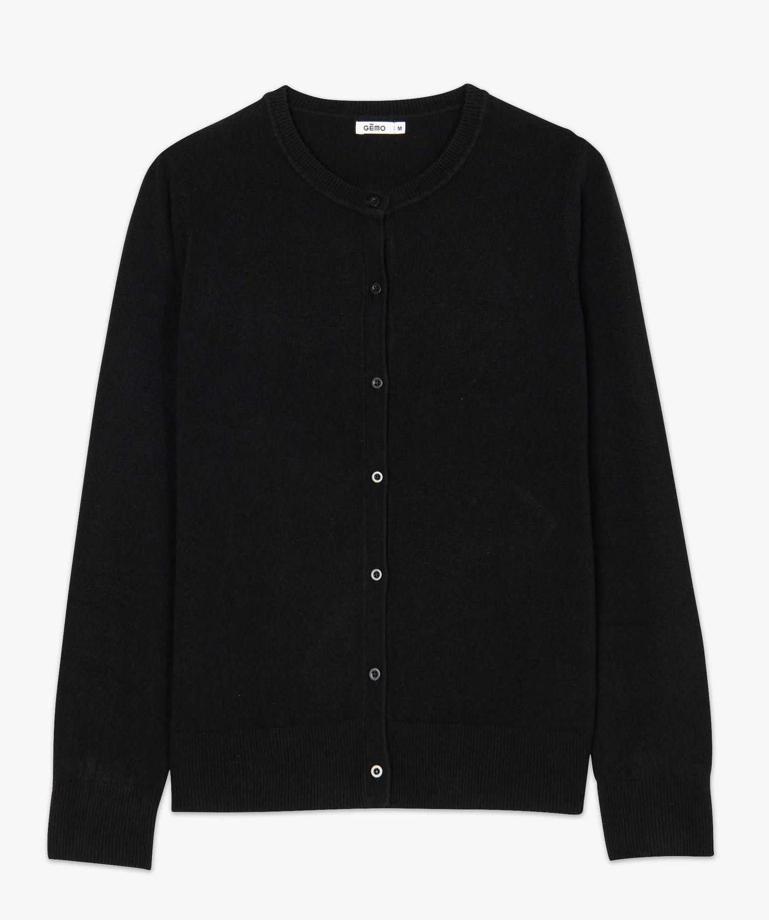 Gilet à col rond en maille fine femme noir