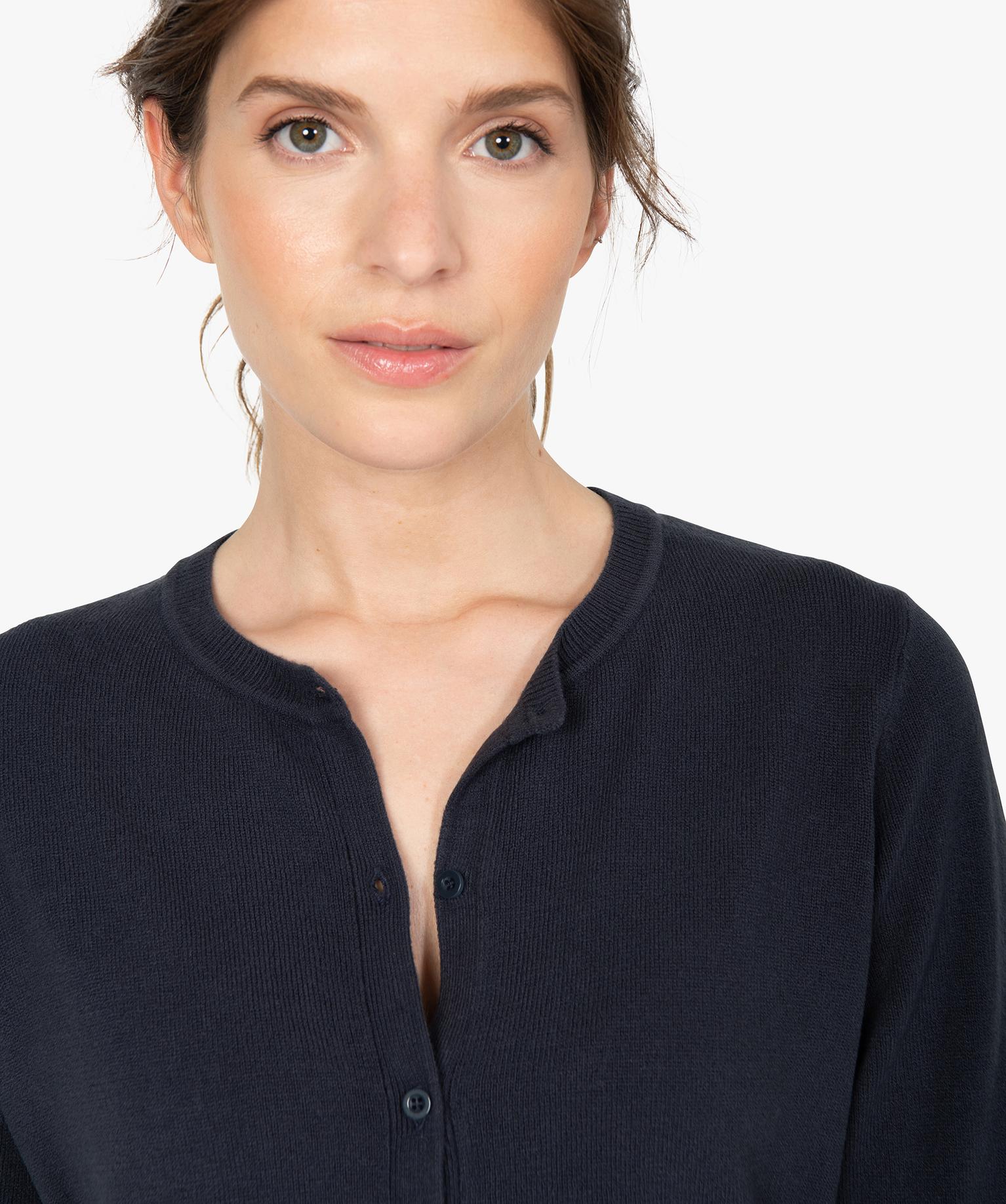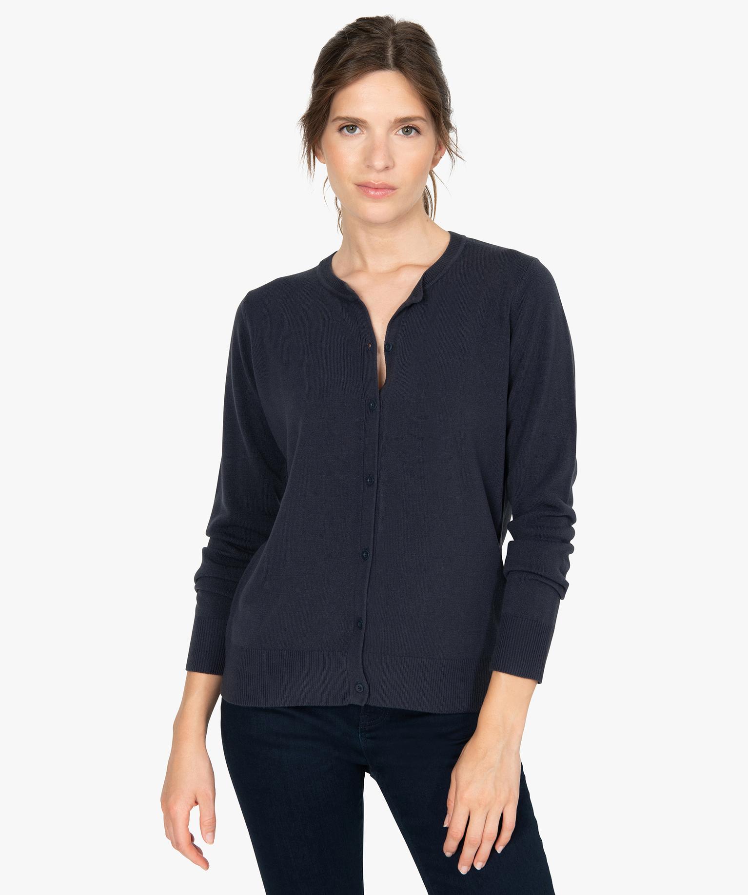 Idéal pour réchauffer une robe, une chemise ou un tee-shirt, le gilet en maille fine fait partie des pièces maîtresses du dressing féminin. Ce gilet à col rond affiche un look classique et élégant. Il se porte également comme un pull, rentré dans un pantalon. Ce pull femme possède des finitions bord-côte non resserrées dans le bas, au niveau du col et aux poignets. Vous apprécierez la douceur de la maille qui le rend très agréable à porter même directement sur la peau.