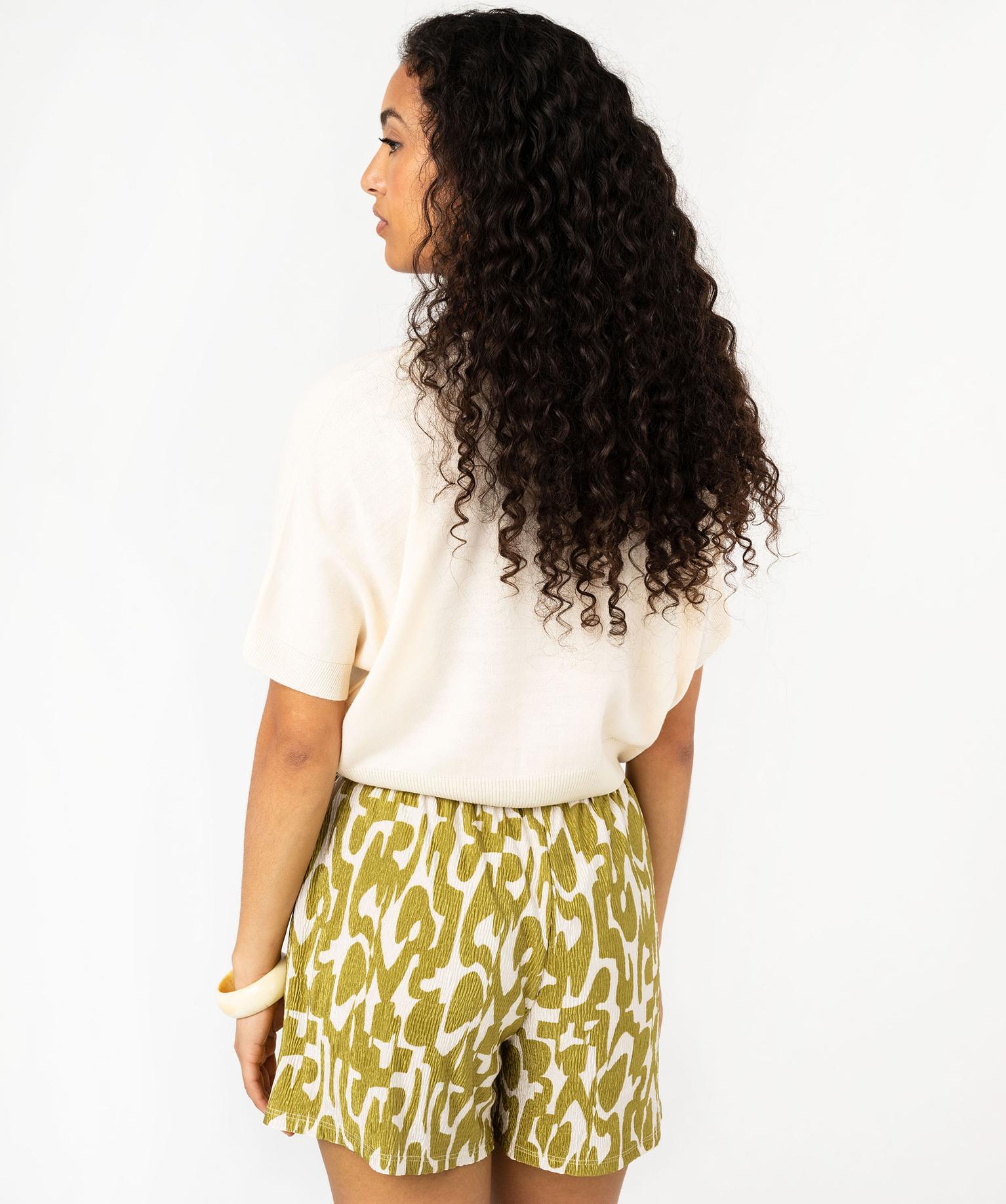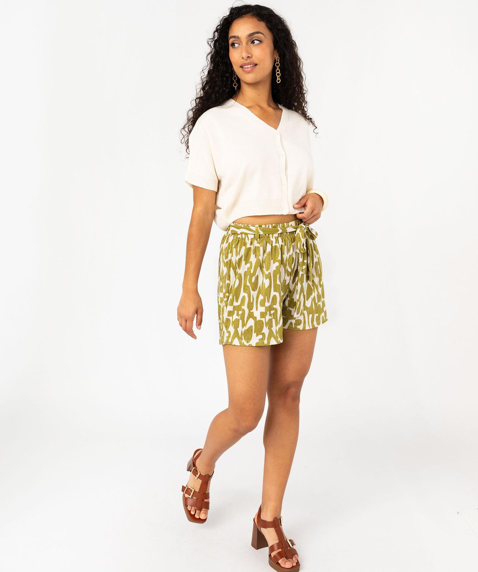 Cet élégant gilet pour femme rehaussera les tenues du quotidien avec style. Ce gilet à manches courtes affiche une coupe large et courte accentuée par des emmanchures chauve-souris. Il possède un col V séduisant et se ferme par de petits boutons ton sur ton. Un gilet original à porter sur un tee-shirt à manches longues ou sur une robe de soirée. Finitions bord-côte sur le col et dans le bas.