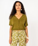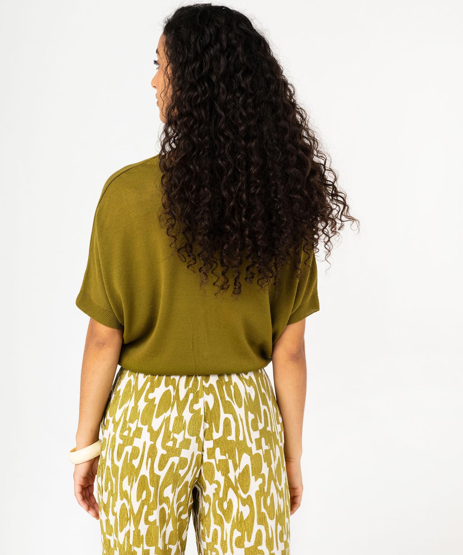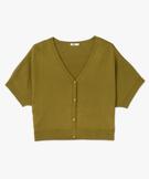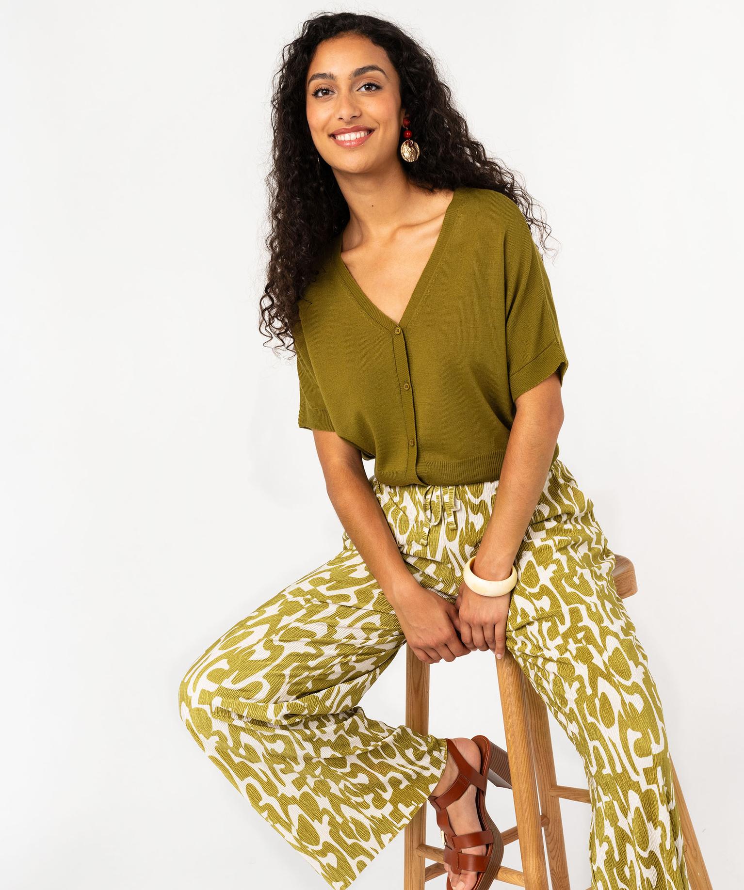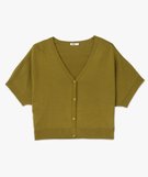 Cet élégant gilet pour femme rehaussera les tenues du quotidien avec style. Ce gilet à manches courtes affiche une coupe large et courte accentuée par des emmanchures chauve-souris. Il possède un col V séduisant et se ferme par de petits boutons ton sur ton. Un gilet original à porter sur un tee-shirt à manches longues ou sur une robe de soirée. Finitions bord-côte sur le col et dans le bas.