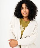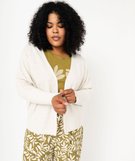 Ce joli gilet pour femme grande taille (du 46/48 au 54/56) réchauffera avec élégance les tenues. Ce gilet tricoté dans une maille fantaisie est incrusté de fil pailleté, ajoutant une touche festive aux looks du quotidien comme aux tenues de soirée. Il affiche une coupe large accentuée par manches à emmanchures chauve-souris. Ce gilet porté ouvert possède de longues finitions en bord-côte aux poignets qui couvre l’avant-bras. Un gilet scintillant à porter sur une robe ou avec un ensemble jean + T-shirt.